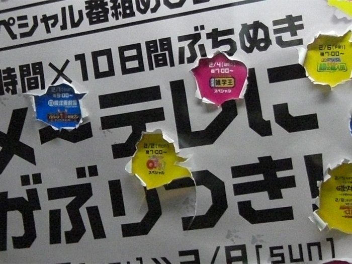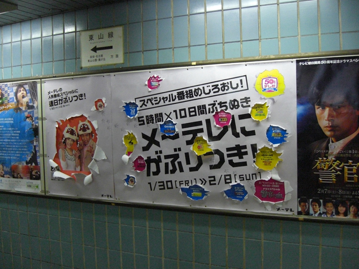 メ~テレの「スペシャル番組めじろおし!5時間×10日間ぶちぬき メ~テレにかぶりつき!」の広告。